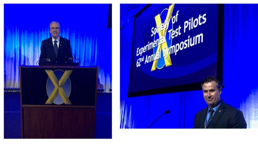 Questions afterward included: how close is it to a Martian atmosphere, what decompression mitigations are in place, do you need a yaw dampener, and what gives the best data – flutter exciters or stick raps? I told several other curious SETP attendees how exciting it was to be part of a team dedicated to an end result that few test pilots thought possible before this year. I heard several times, “Well, until you crossed 60,000 feet I wasn’t sure. Then you soared above 76,000 feet inside of a week….What will you do next year?” Jim and Miguel were proudly displaying their Soaring Society of America Symons Memorial triple lennie pins on the lapels of their jackets.