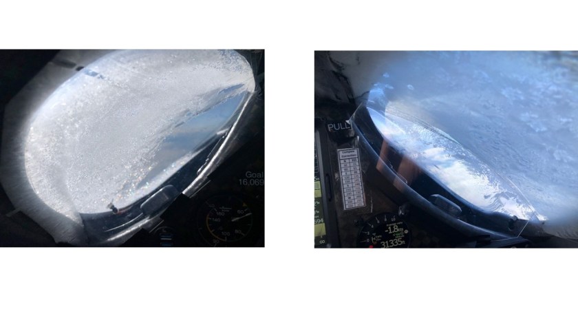 Mike made a clear vision plenum for both the left and right eyeball windows. These worked well on tow, but the “balmy” -50 C (-58 F) was more than they could keep frost free for the entire 3 hour flight. For those who have flown the Perlan 2 simulator – imagine the eyeball visibility being reduced in size to just the pupils of those eyes. See the photos for a real idea. Jim removed the plenums to scrape the frost off before landing……..We continue making other improvements and re-calibrations.